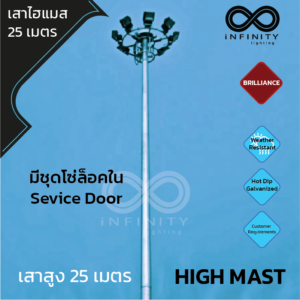 เสาไฟไฮแมส สูง 25 เมตร สำหรับ 8 ดวงโคม High Mast Pole 25 M.