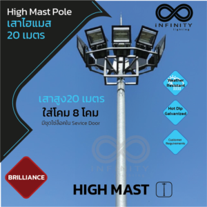 เสาไฟไฮแมส สูง 20 เมตร สำหรับ 8 ดวงโคม High Mast Pole 20M.