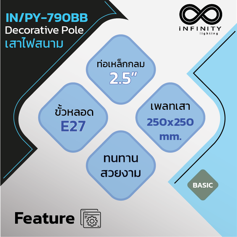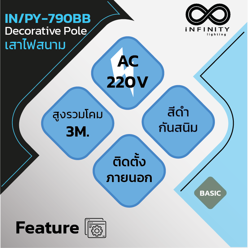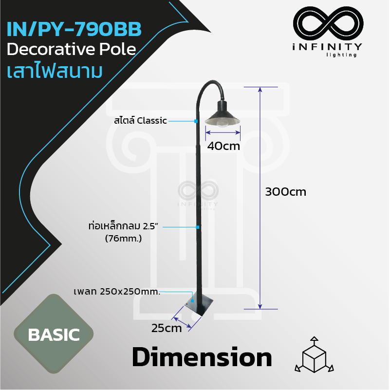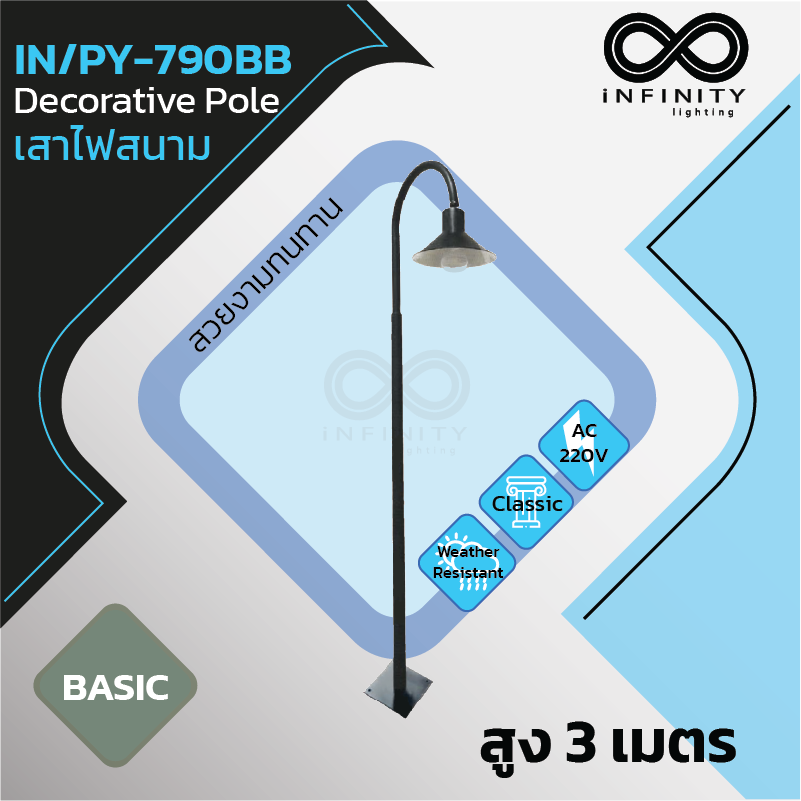 IN/PY-790BB เสาไฟสนาม 3 เมตร BASIC Series ( decorative pole 3 meters )