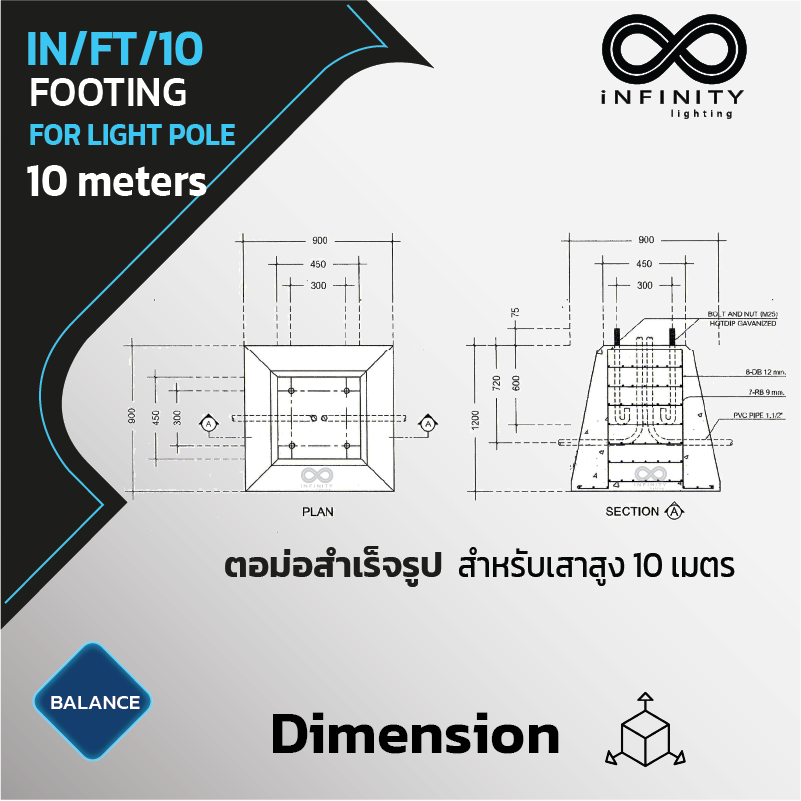 ความสูงตอม่อ 1200mm.